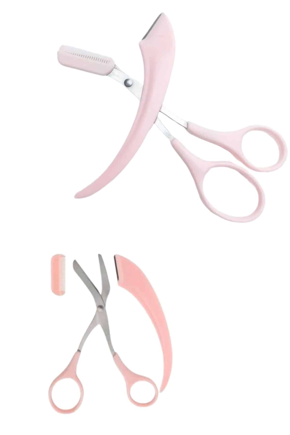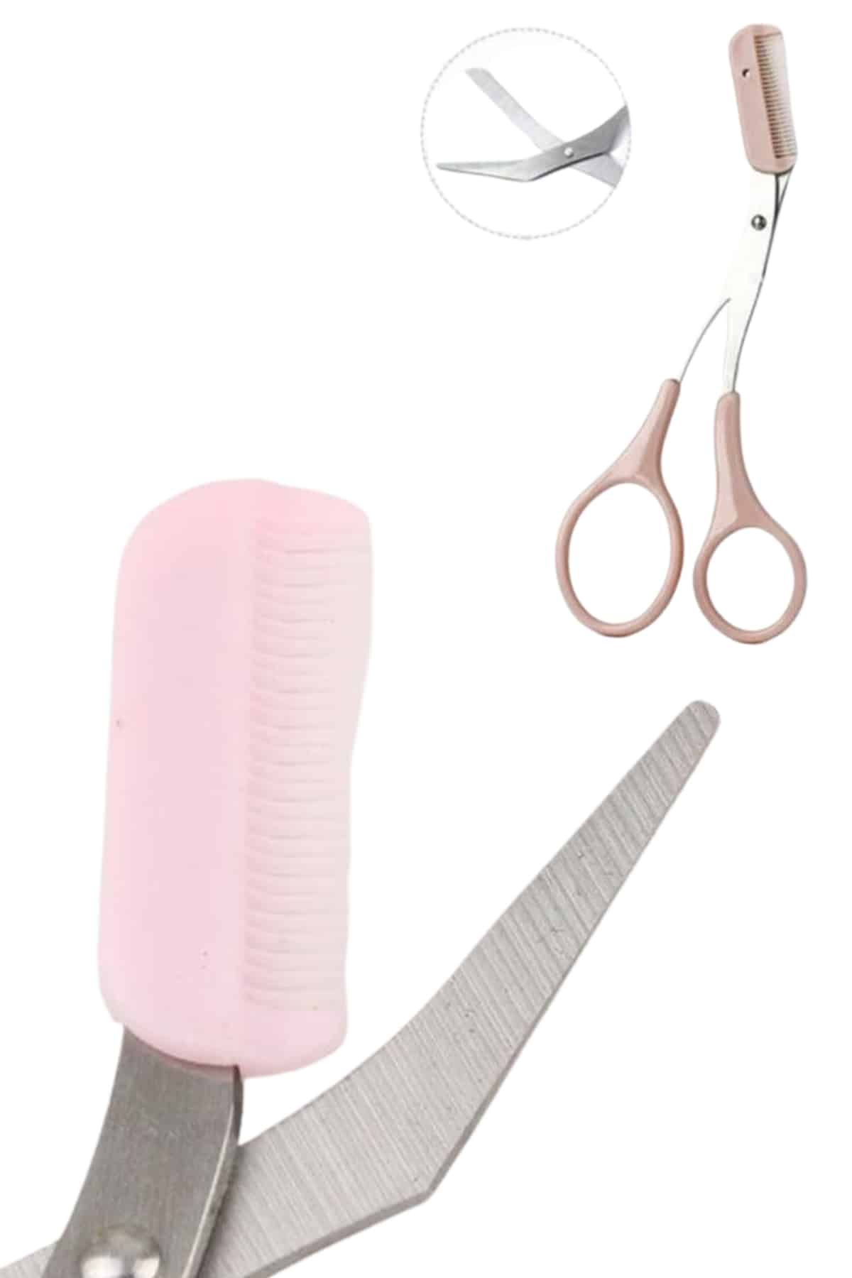 Kavisli Kaş Kirpik Düzeltici Bıyık Alma Taraklı Kaş Makası Yüz Bakım Seti Makas