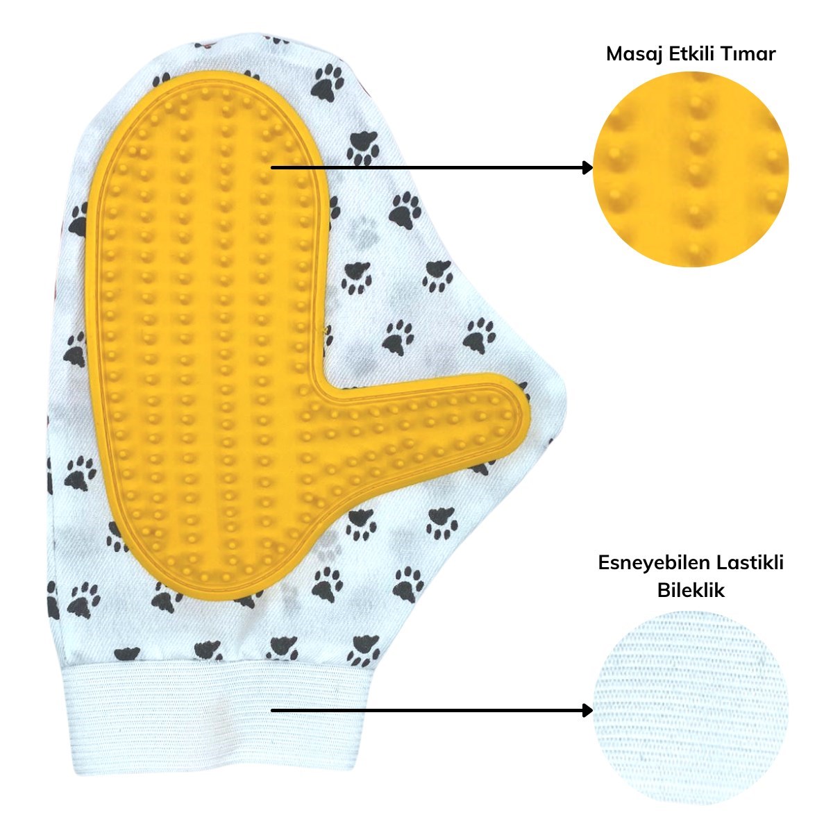 Eldivenin avuç içinde hafif dişli bir yüzeyi vardır ve kopmuş tüyleri de köpeğinizden rahatlıkla almanızı sağlar
