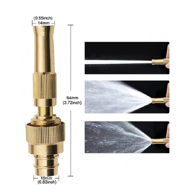 Pirinç hortum püskürtme memesi, bahçe sulama, köpek yıkama, zemin yıkama, araba yıkama, çit temizleme, tıkanma, temizleme araba yıkama için yaygın olarak kullanılır