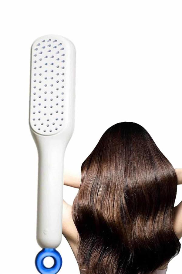 Kendi Kendini Temizleyen Otomatik Tuşlu Saç Tarağı Dolaşık Açıcı Masaj Fırçası Silikon Fırça
