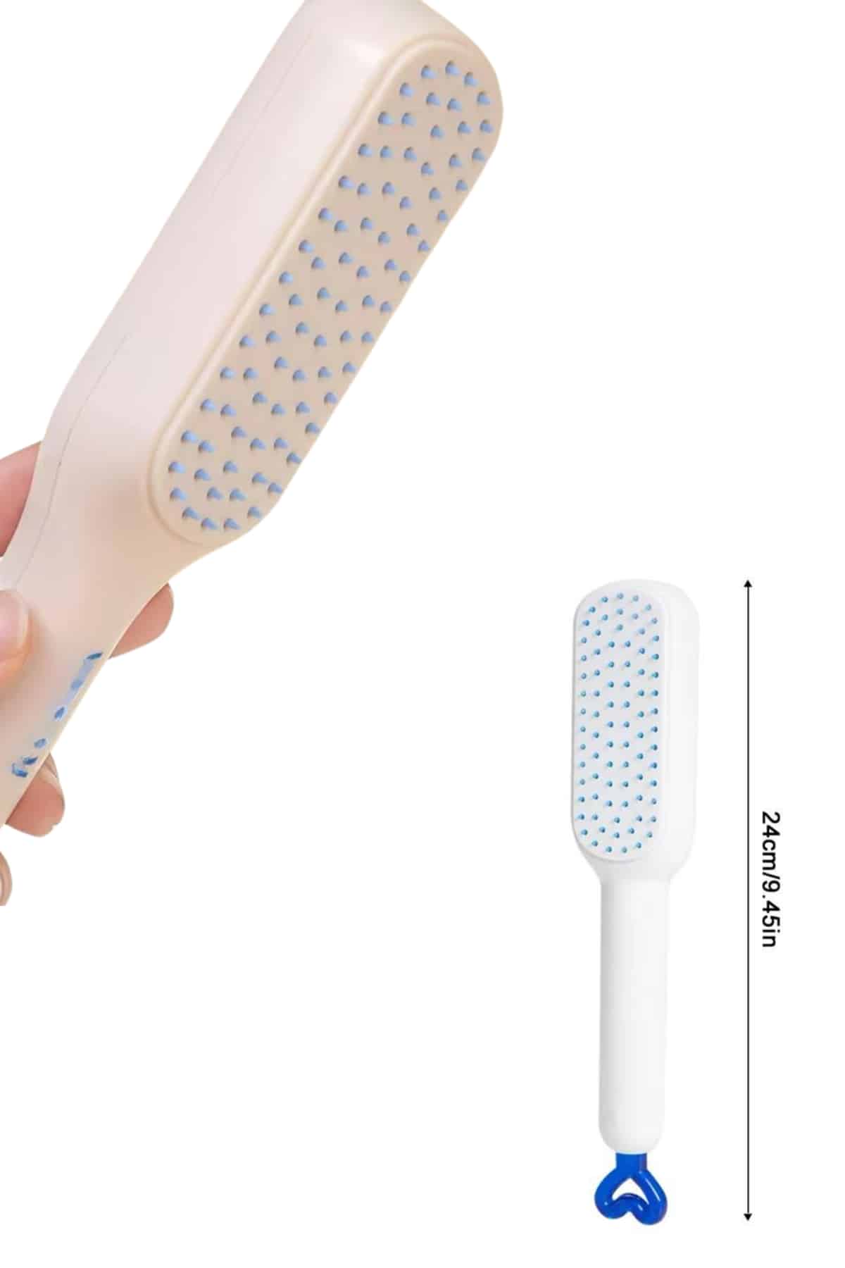 Kendi Kendini Temizleyen Otomatik Tuşlu Saç Tarağı Dolaşık Açıcı Masaj Fırçası Silikon Fırça