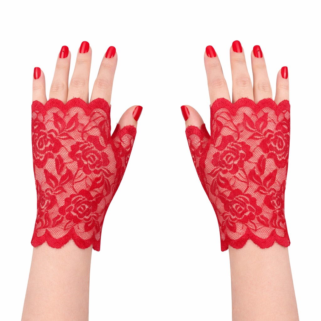 Kırmızı Dantel Parmaksız Kısa Eldiven