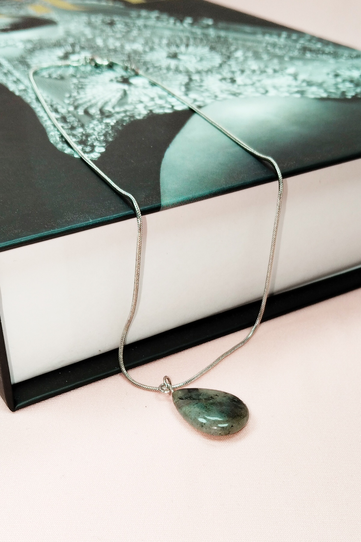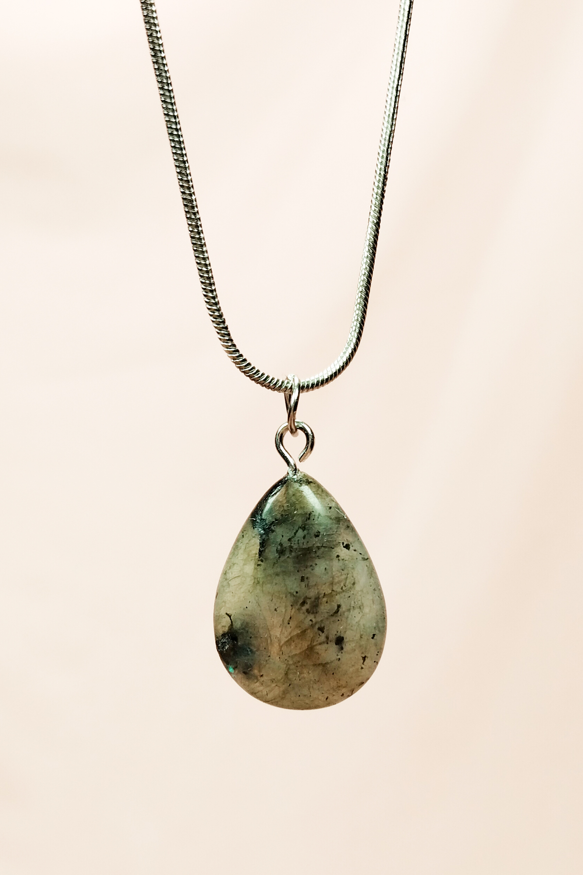 Labradorit Doğal Taşı Zincirli El Yapımı Kolye Uç: 2 cm Zincir: 20 cm Kutulu