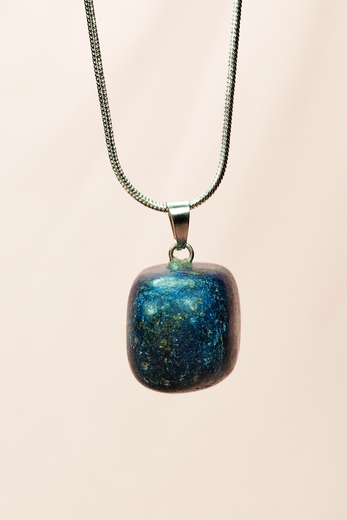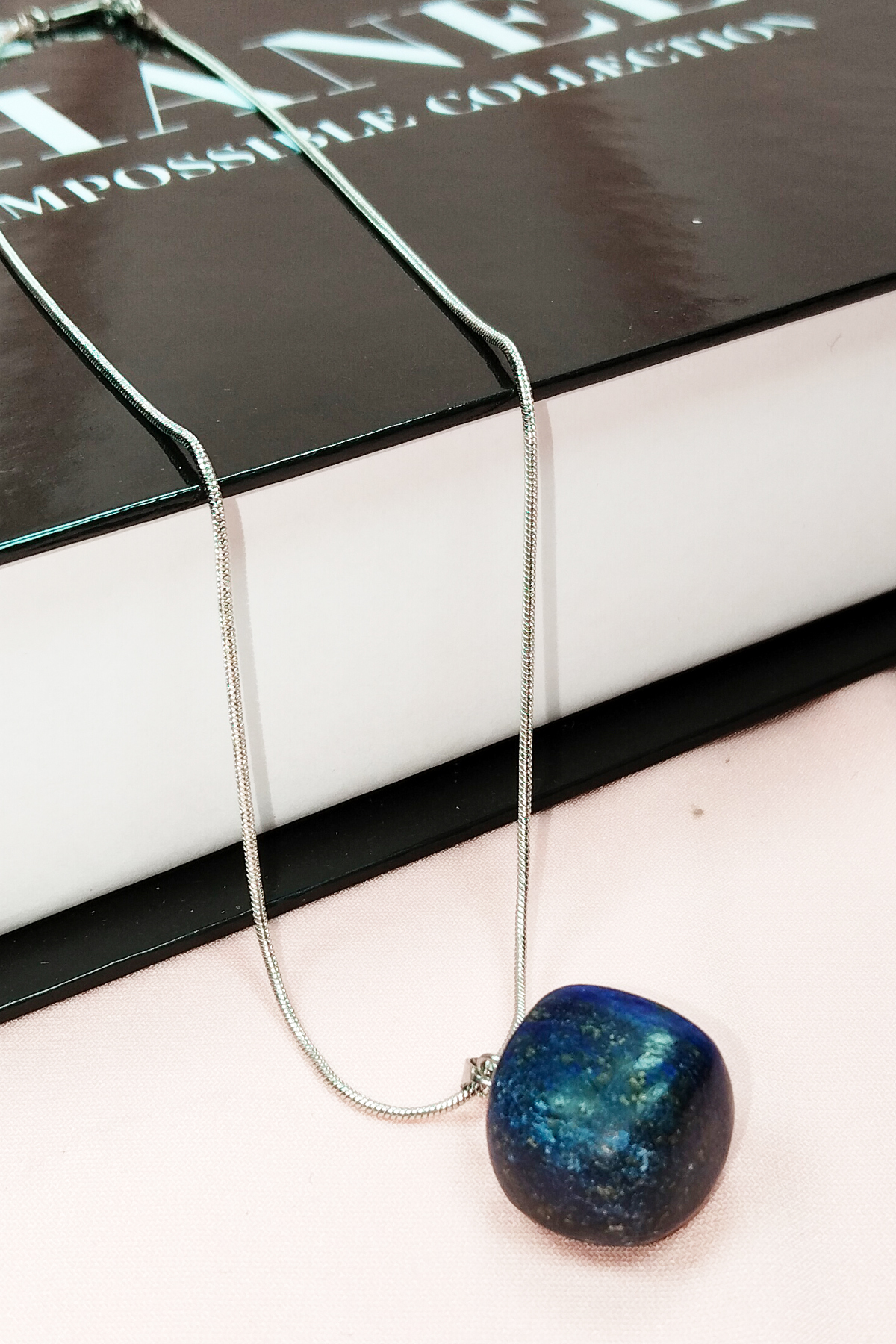 Lapis Lazuri Doğal Taşı Zincirli El Yapımı Kolye Uç: 2 cm Zincir: 20 cm Kutulu