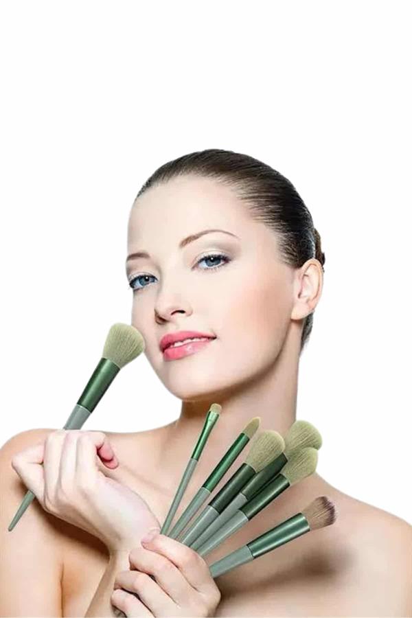 Makyaj Fırça Seti Yeşil 13 Parça Fondöten Fırçası Allık Fırçası Far Fırçası