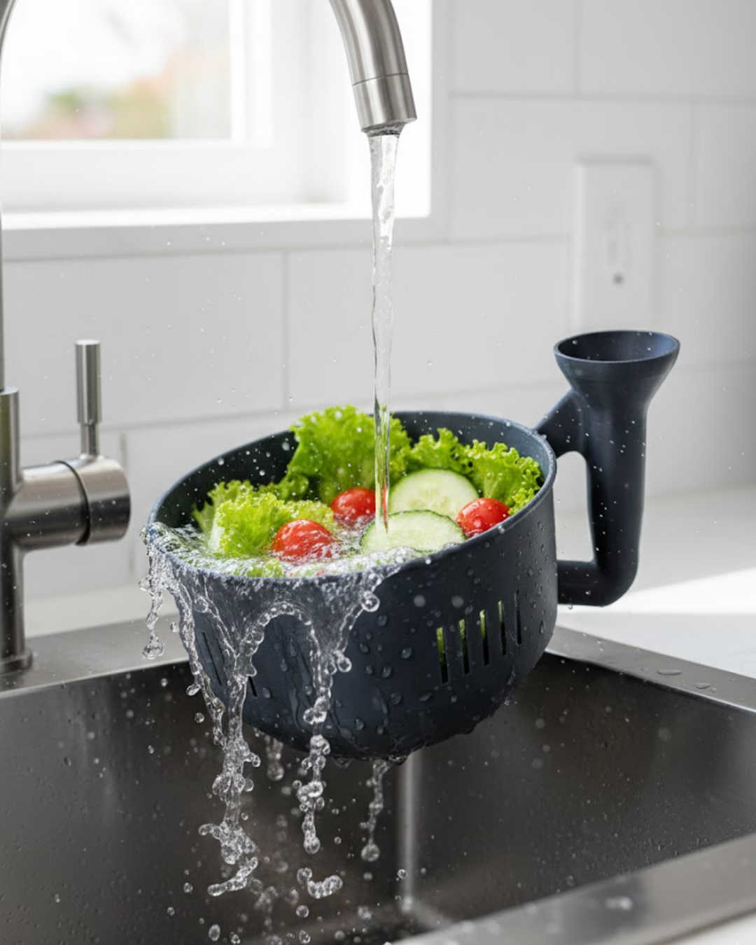 Günlük mutfak işlerini kolaylaştıran modern tasarımlı sebze yıkama kabı, fonksiyonelliği ve şıklığı bir araya getirir. Geniş iç hacmi sayesinde tek seferde daha fazla sebze yıkamanıza imkan tanır. İç yüzeyde bulunan dikey su tahliye kanalları, suyun hızlı şekilde süzülmesini sağlar ve yiyeceklerin fazla suyla temasını minimuma indirir.Ergonomik sap tasarımı, ürünü güvenli ve konforlu şekilde tutmanıza yardımcı olur. Yıkama işlemi sırasında suyu kontrollü biçimde boşaltabilir, ekstra süzgeç ihtiyacını ortadan kaldırabilirsiniz.Sağlam yapısı sayesinde uzun süreli kullanım sunar. Siyah modern tasarımı ile hem klasik hem çağdaş mutfak dekorasyonuna uyum sağlar. Pratik, hijyenik ve şık bir mutfak yardımcısıdır.
