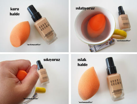 Makyaja başlamadan birkaç dakika önce süngeri ıslatın ve bir havlu ile fazla nemini alın. Biraz beklettikten sonra fondöteninizi uygulayın. Bu şekilde daha kusursuz bir sonuç alacaksınız.