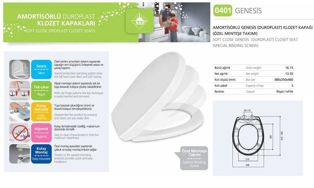 NKP Genesis Amortisörlü+Tak Çıkar Klozet Kapağı