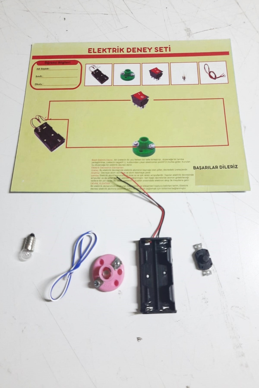 Okul Deney Seti - Elektrik Seti Ampul - Pil Yatağı - Duy -Düğme Seti