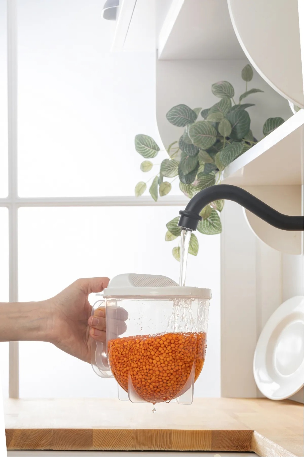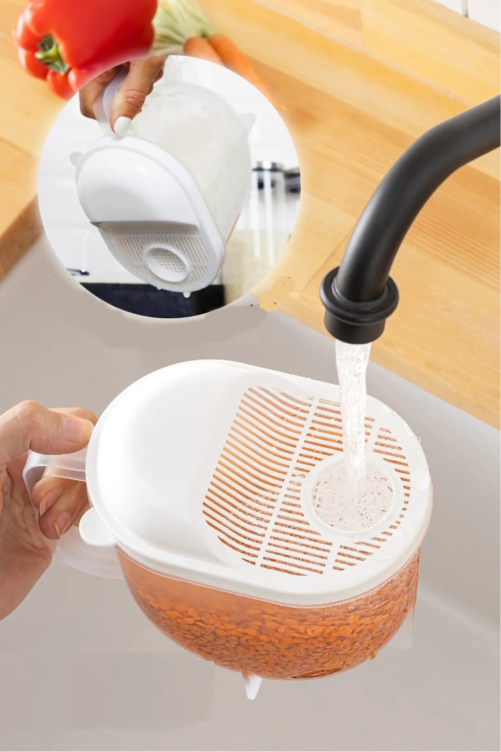 Geniş Kapasite: 1 litrelik geniş hacim, bir seferde yeterli miktarda pirinci yıkayıp süzmenizi sağlar, böylece pişirme süreci daha hızlı ve verimli olur.