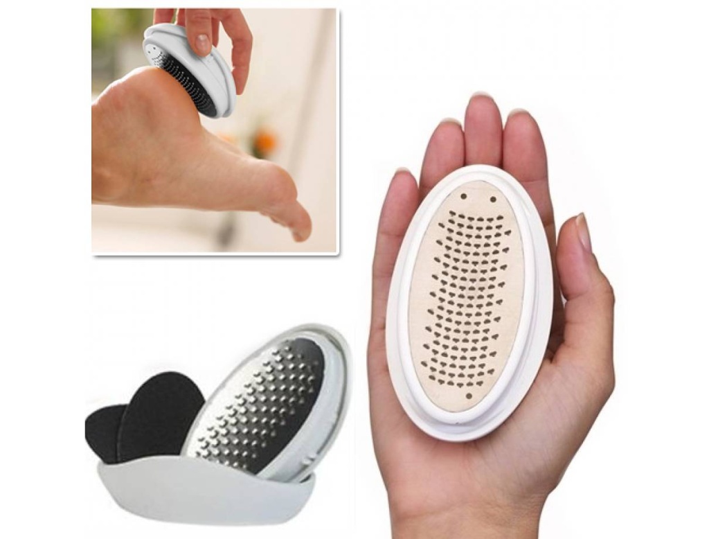 Ped Egg paslanmaz çelikten ve 130 hassas mikro dokudan oluşmaktadır.Kurumuş ölü derileri can yakmadan sağlıklı deriye zarar vermeden temizler.Ölü derileri haznesinde biriktirir yerlere dökmez. Nasırları hızla temizler.