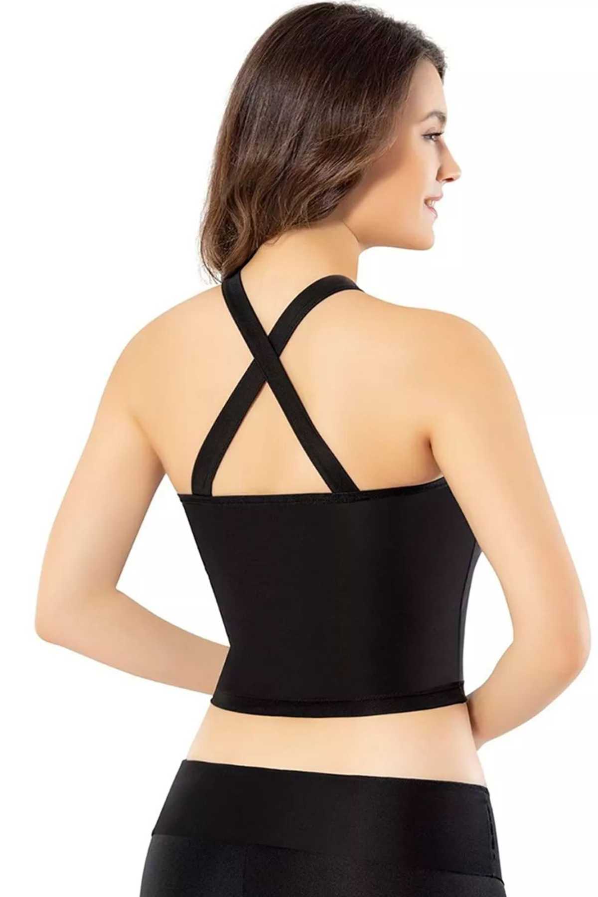 Pedli Dalgıç Modelli Krop Geniş Askılı Kadın Büstiyer Siyah