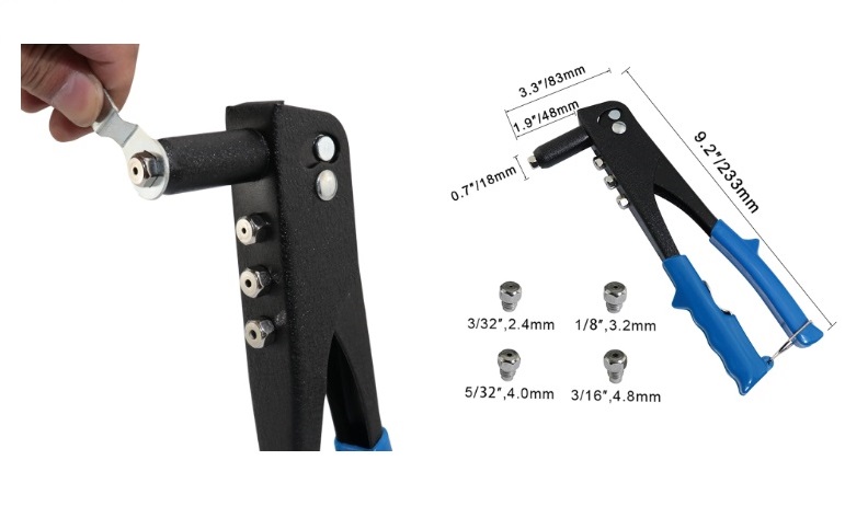 4 farklı perçin kalınlığı için değiştirilebilir uçlar