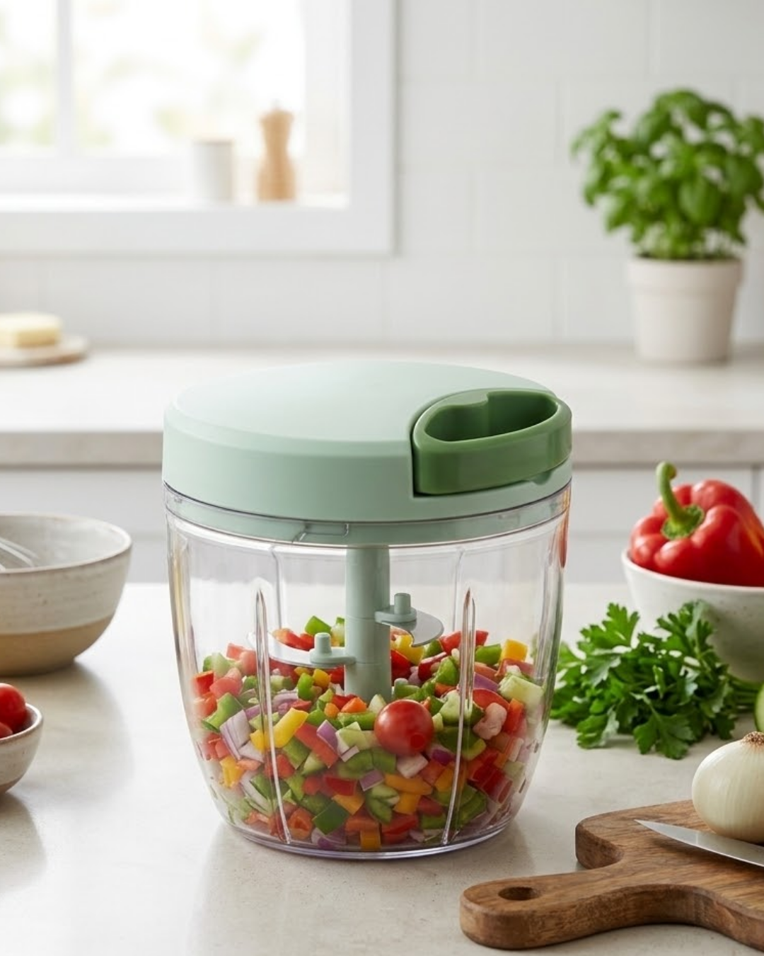 Pratik İpli Mutfak Doğrayıcısı Sebze Soğan Sarımsak Doğrayıcı