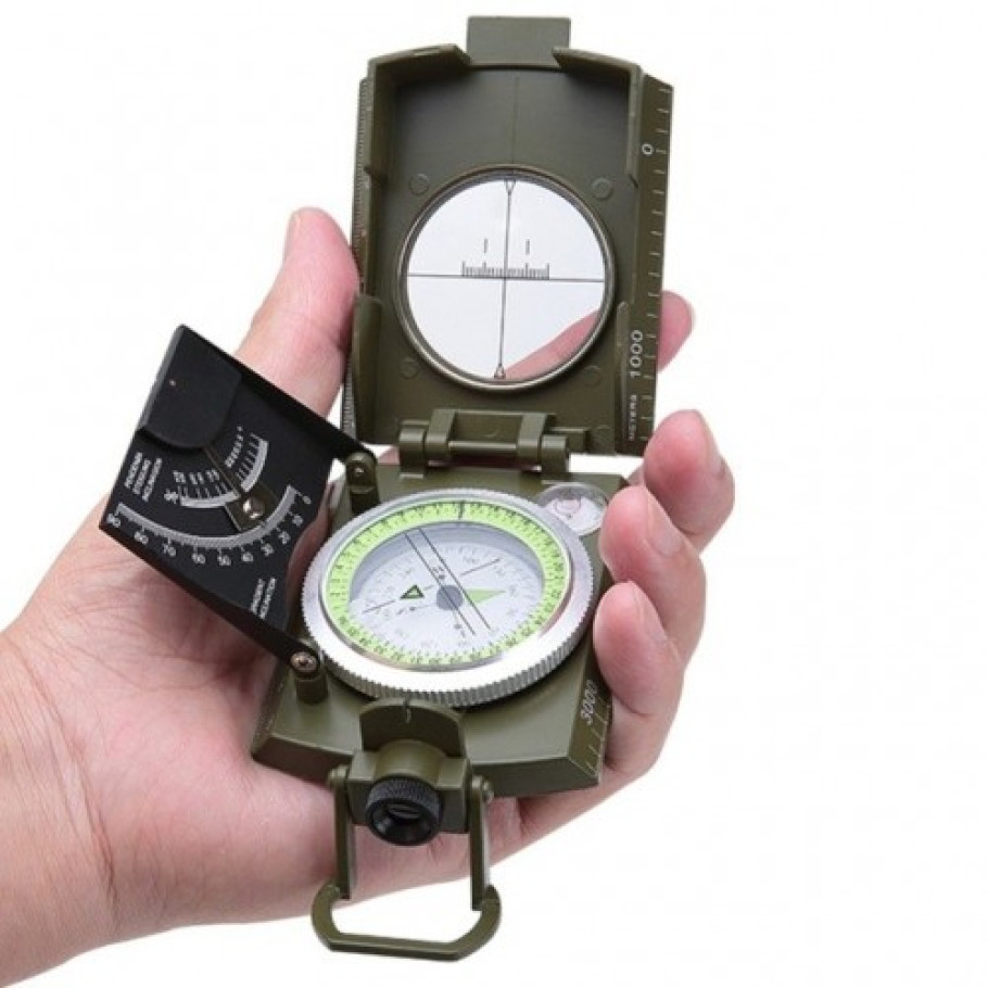Ekstra Geniş Pusula / Pusula Ağır, Sert Metalden Yapılmış Entegre Meyil (0-90 Derece Ve Yüzde) Ile / Askeri Pusula