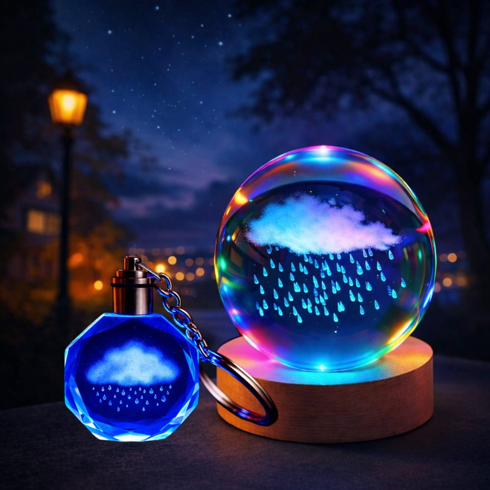 Renk Değiştiren Yağmur Bulutu Tasarımlı Cam Küre Anahtarlık
