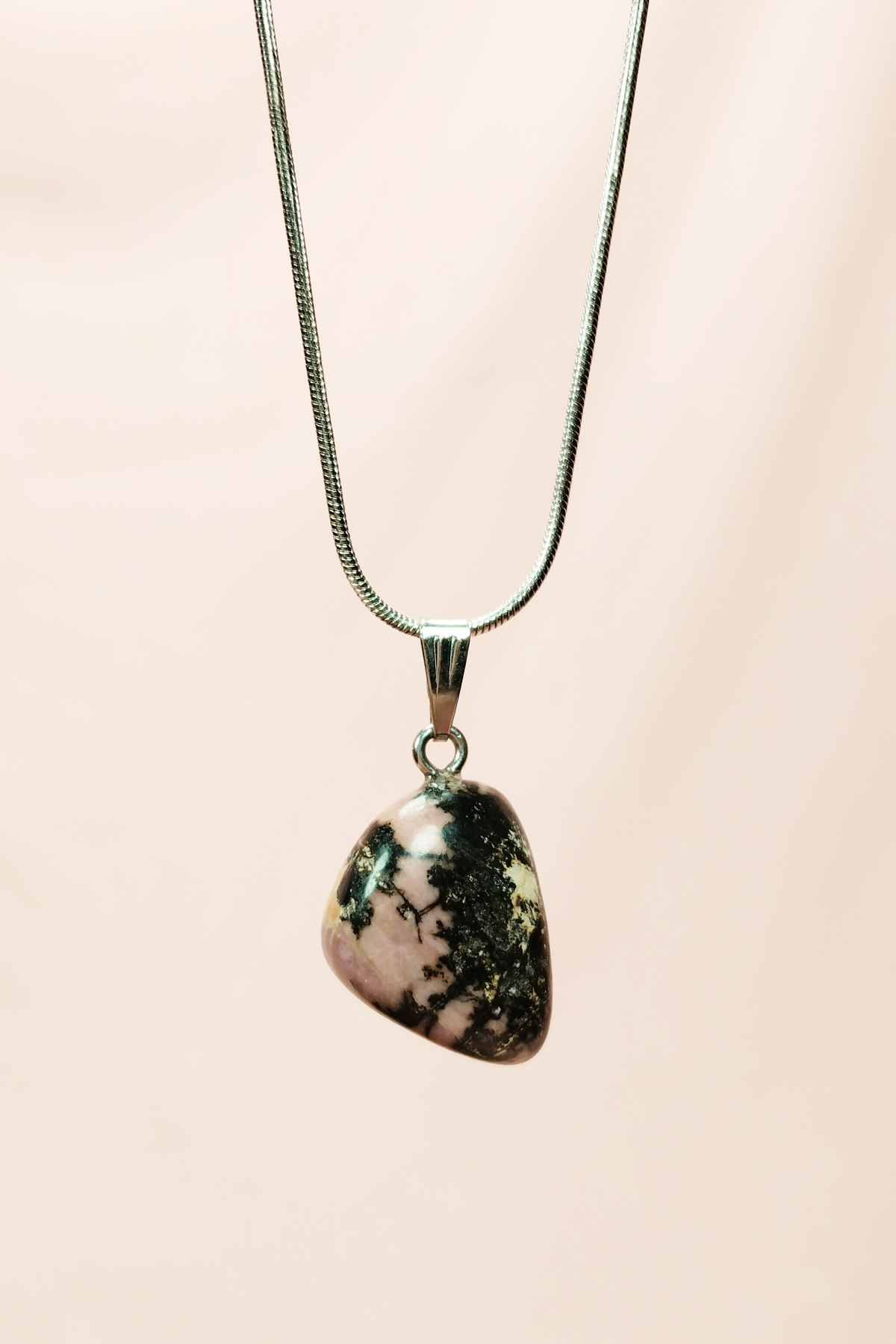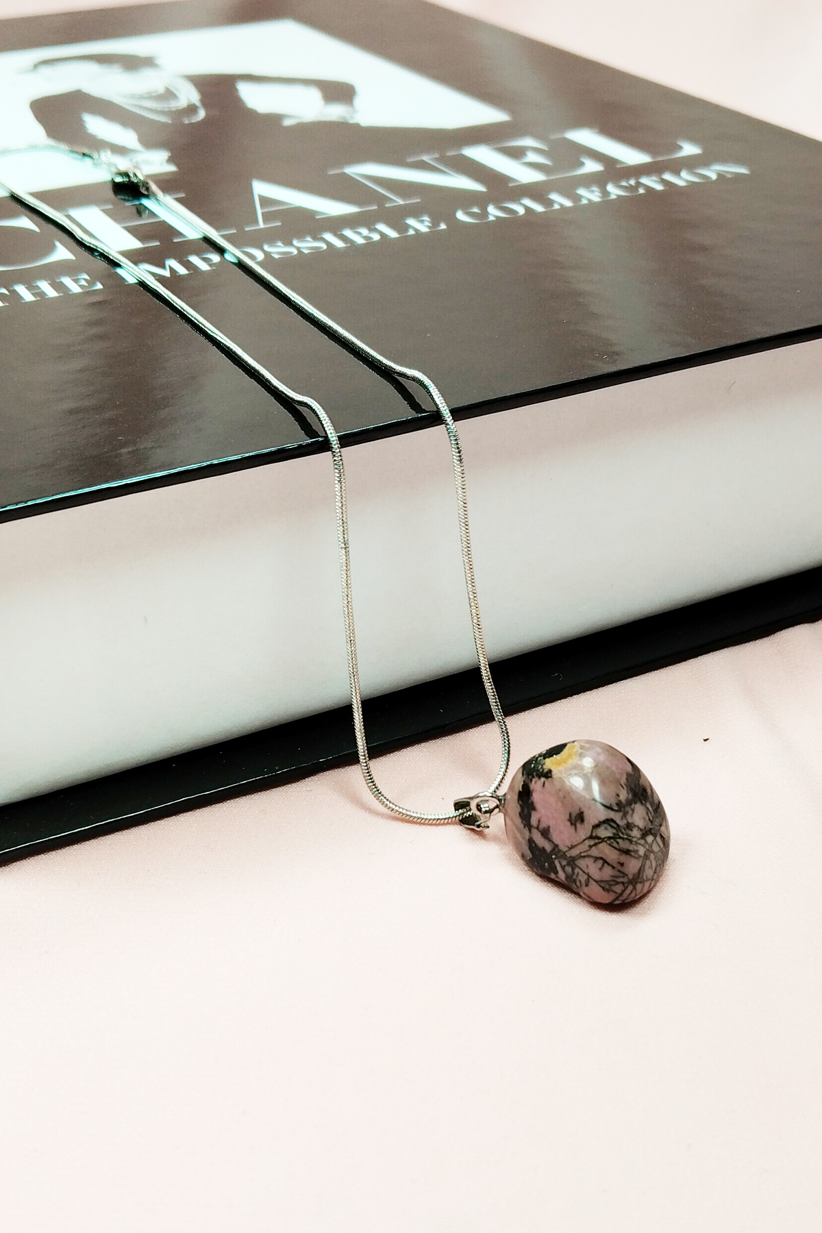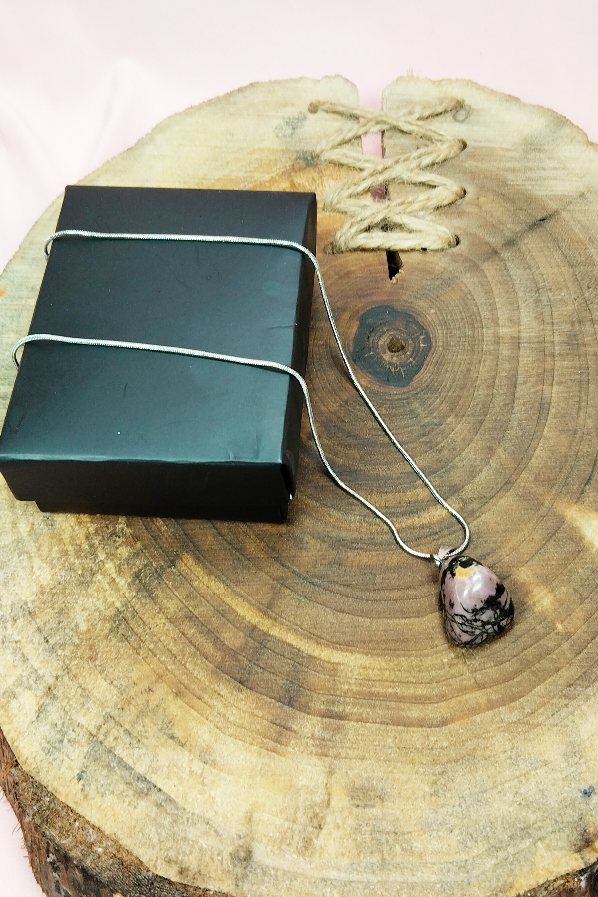 Rodonit Doğal Taşı Zincirli El Yapımı Kolye Uç: 2 cm Zincir: 20 cm Kutulu
