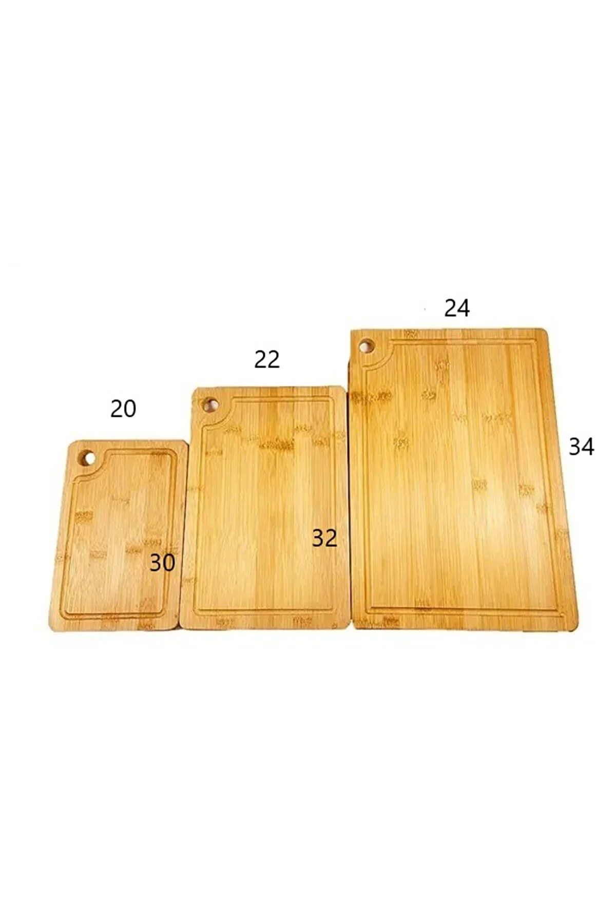 Rossel Premium 3'lü Bambu Kesim Panosu Ürün ölçüsü büyükten küçüğe 24x34 - 22x32- 20x30 cm