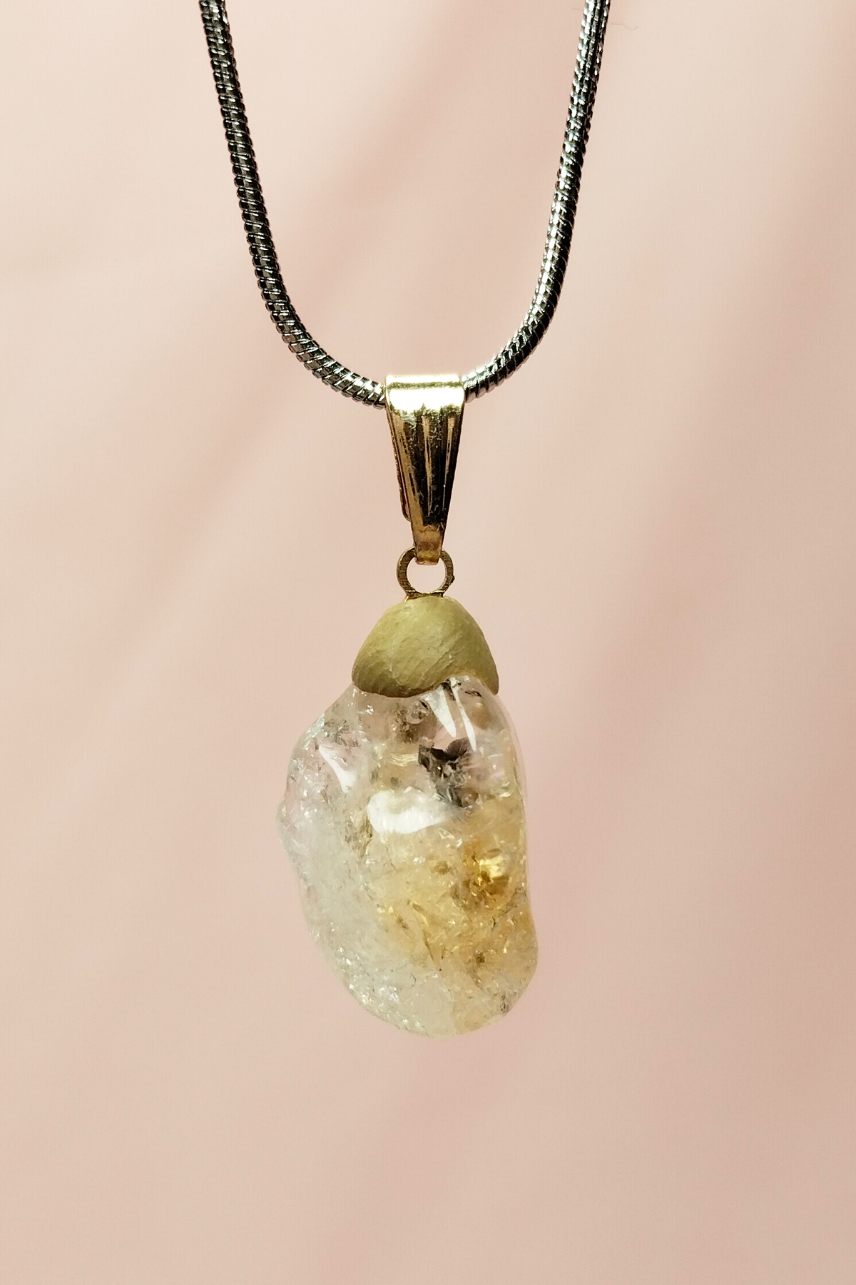 Sitrin Doğal Taşı Zincirli El Yapımı Kolye Uç: 2 cm Zincir: 20 cm Kutulu