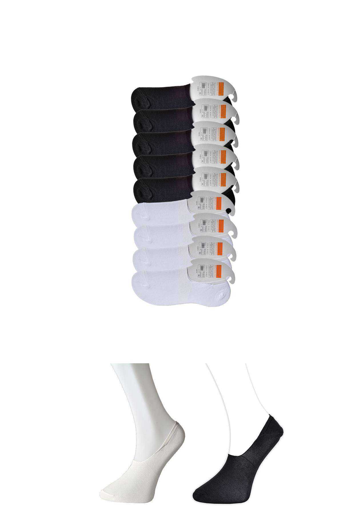 Siyah ve Beyaz Erkek Babet Çorap 9 çift