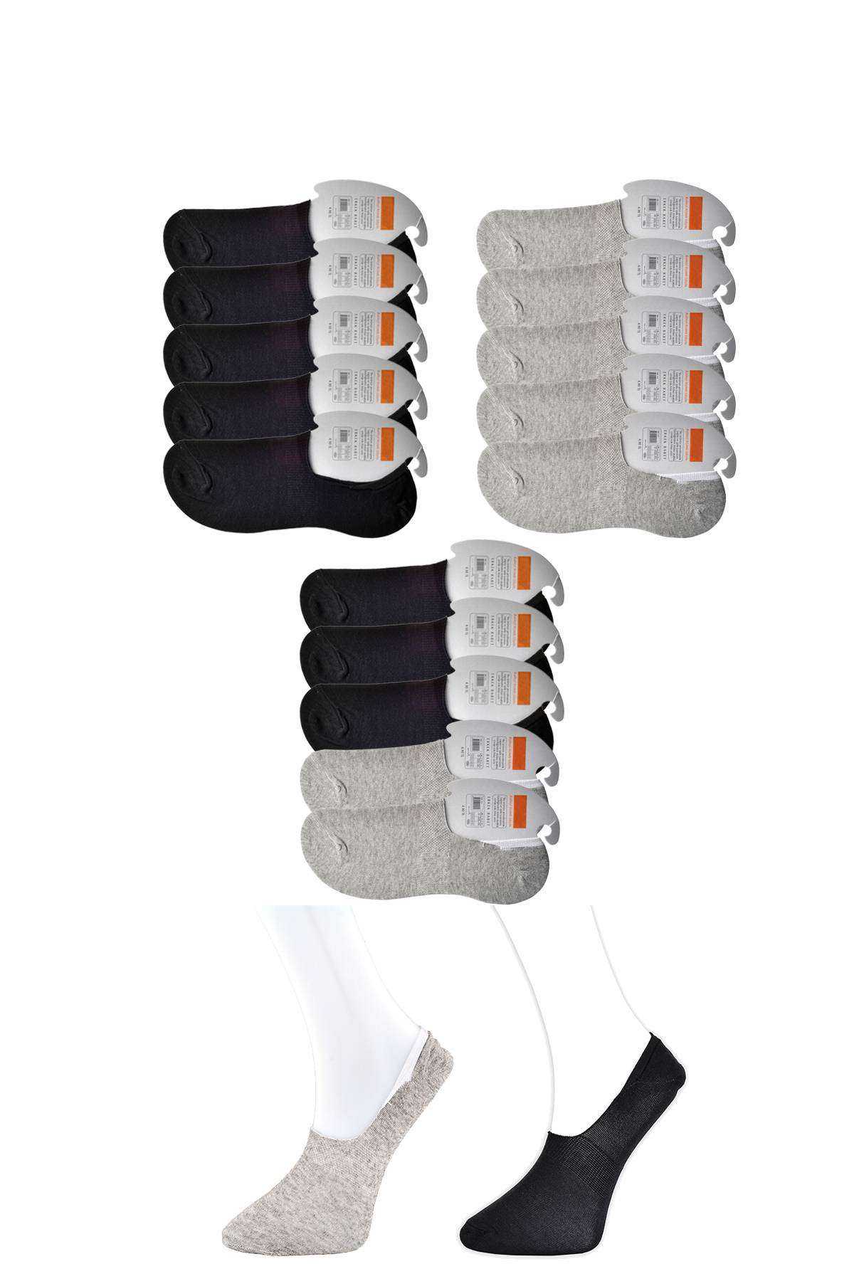 Siyah ve Gri Erkek Babet Çorap 15 çift
