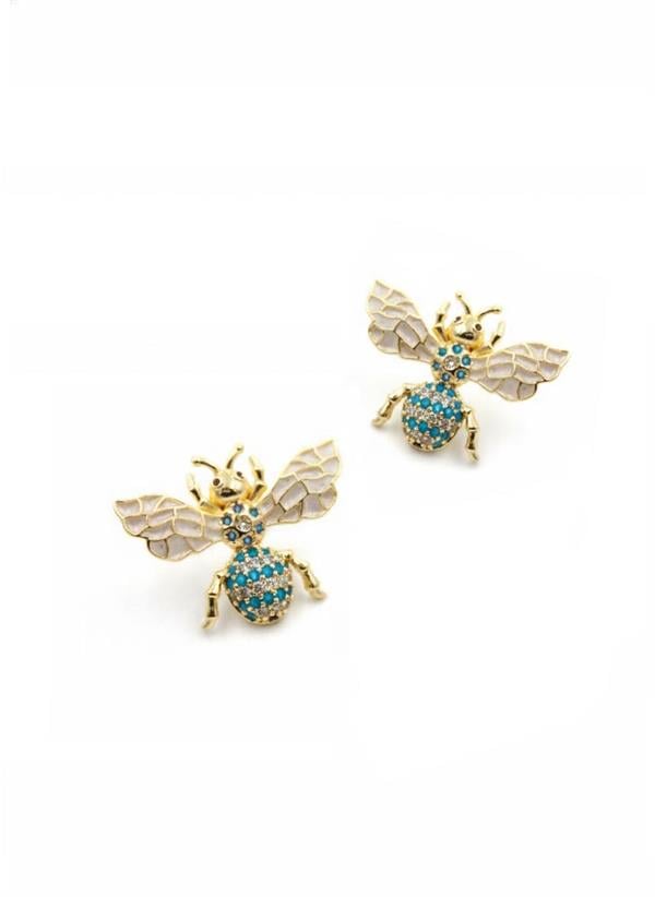 Taşlı Arı Küpe - Mavi