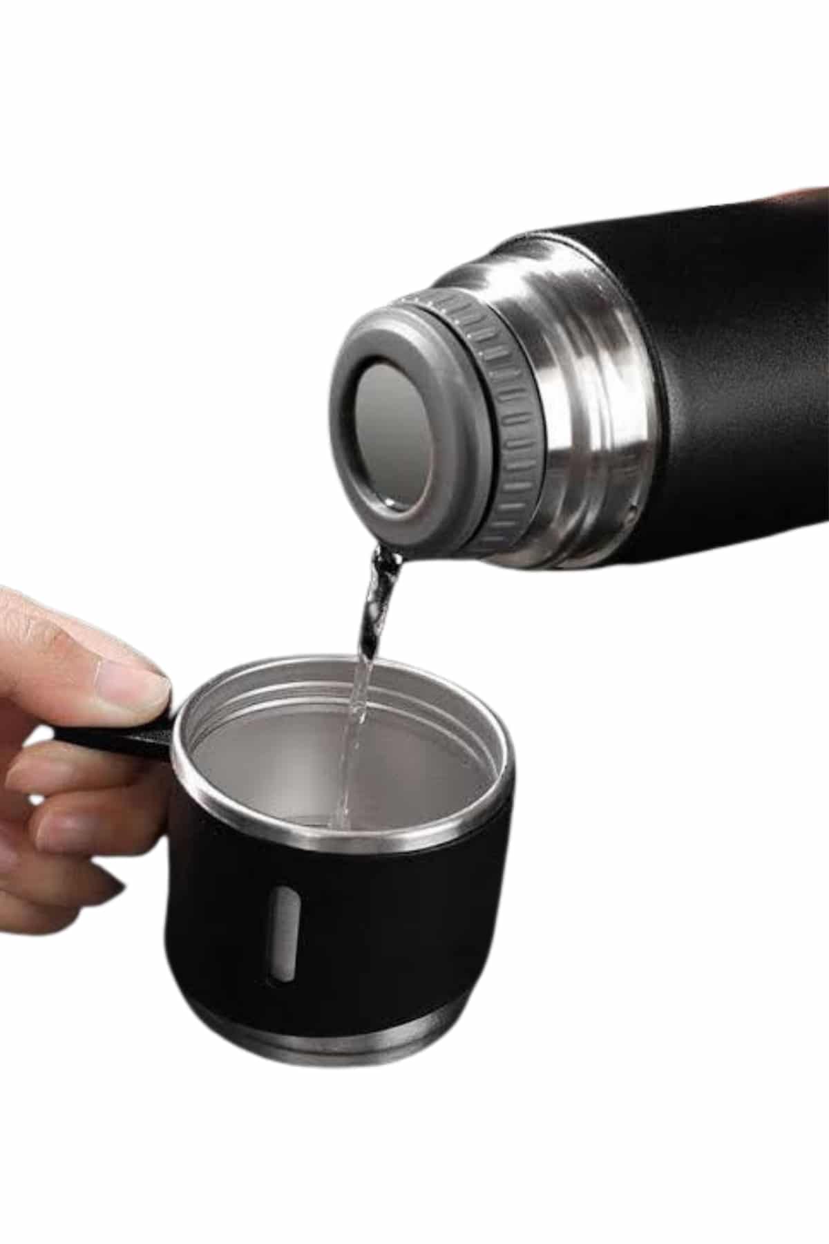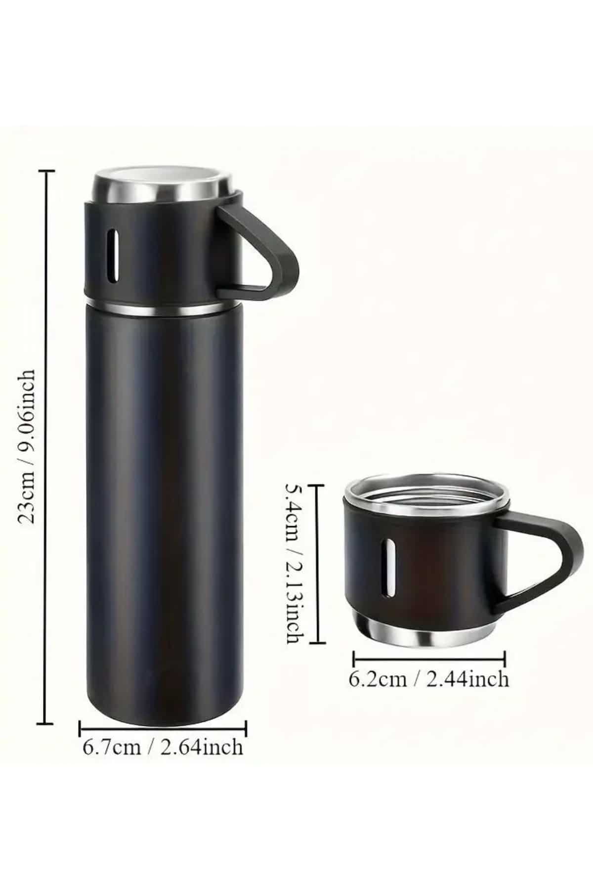 Termos Seti 3'lü Bardak Seti Isı Dayanıklı Siyah Paslanmaz Çelik Vakumlu