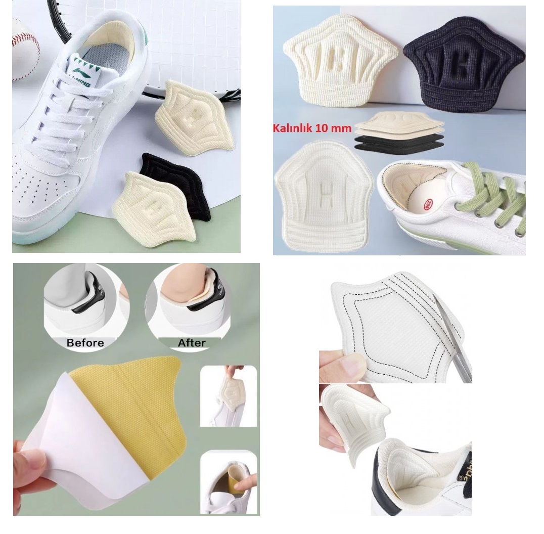 • Kolay Kullanım:Güçlü yapışkanlı arka yüzeyi sayesinde, ayakkabınızın topuk iç astarına saniyeler içinde kolayca yapıştırabilirsiniz. Siyah ve bej renk seçenekleriyle ayakkabılarınızla maksimum uyum sağlar.