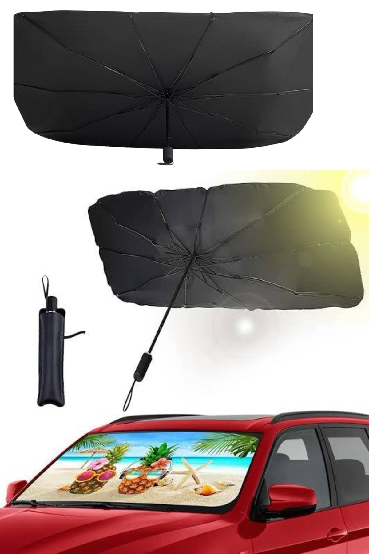 Yüksek kaliteli malzemelerden üretilmiş olan araba güneş koruyucu şemsiye, dayanıklı ve uzun ömürlüdür. Özel yansıtıcı kaplaması sayesinde, güneş ışınlarını etkin bir şekilde geri yansıtır ve malzeme aşınmasını minimuma indirir. Kompakt tasarımı, kullanım sonrası kolayca katlanıp saklanmasını sağlar, böylece az yer kaplar ve her zaman yanınızda taşınabilir.