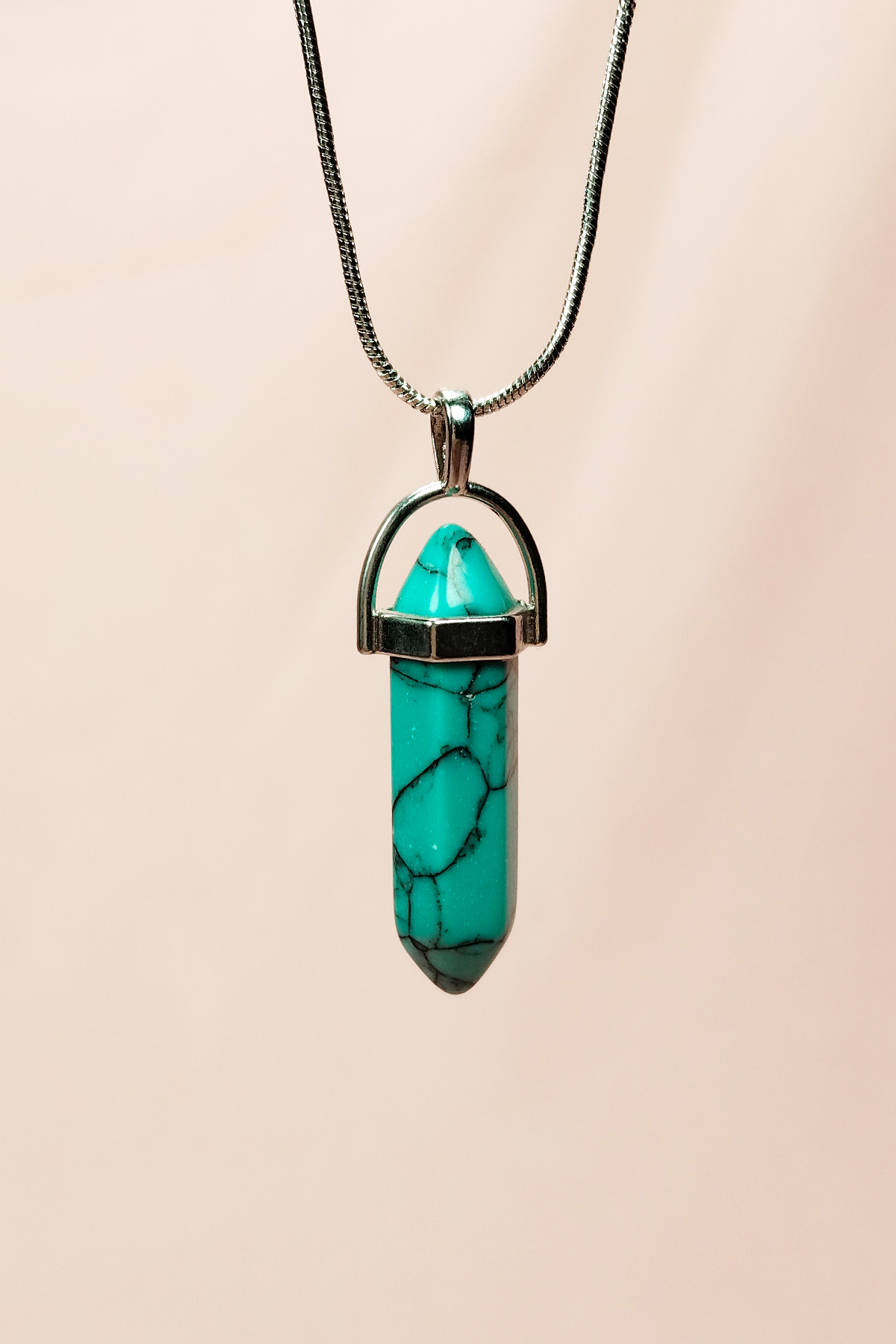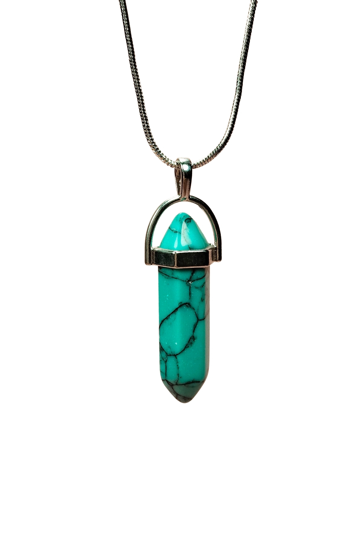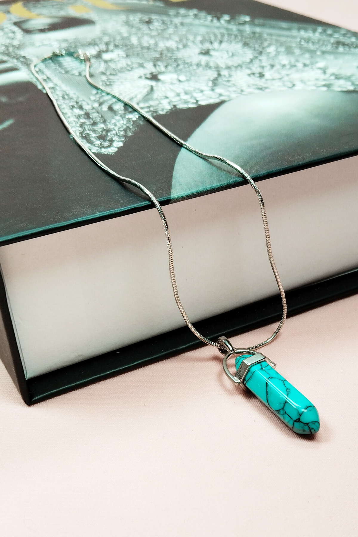 Turkuaz Doğal Taşı Zincirli El Yapımı Kolye Uç: 3 cm Zincir: 20 cm Kutulu