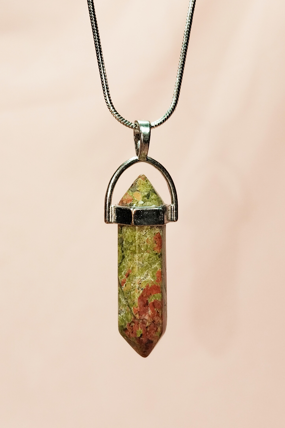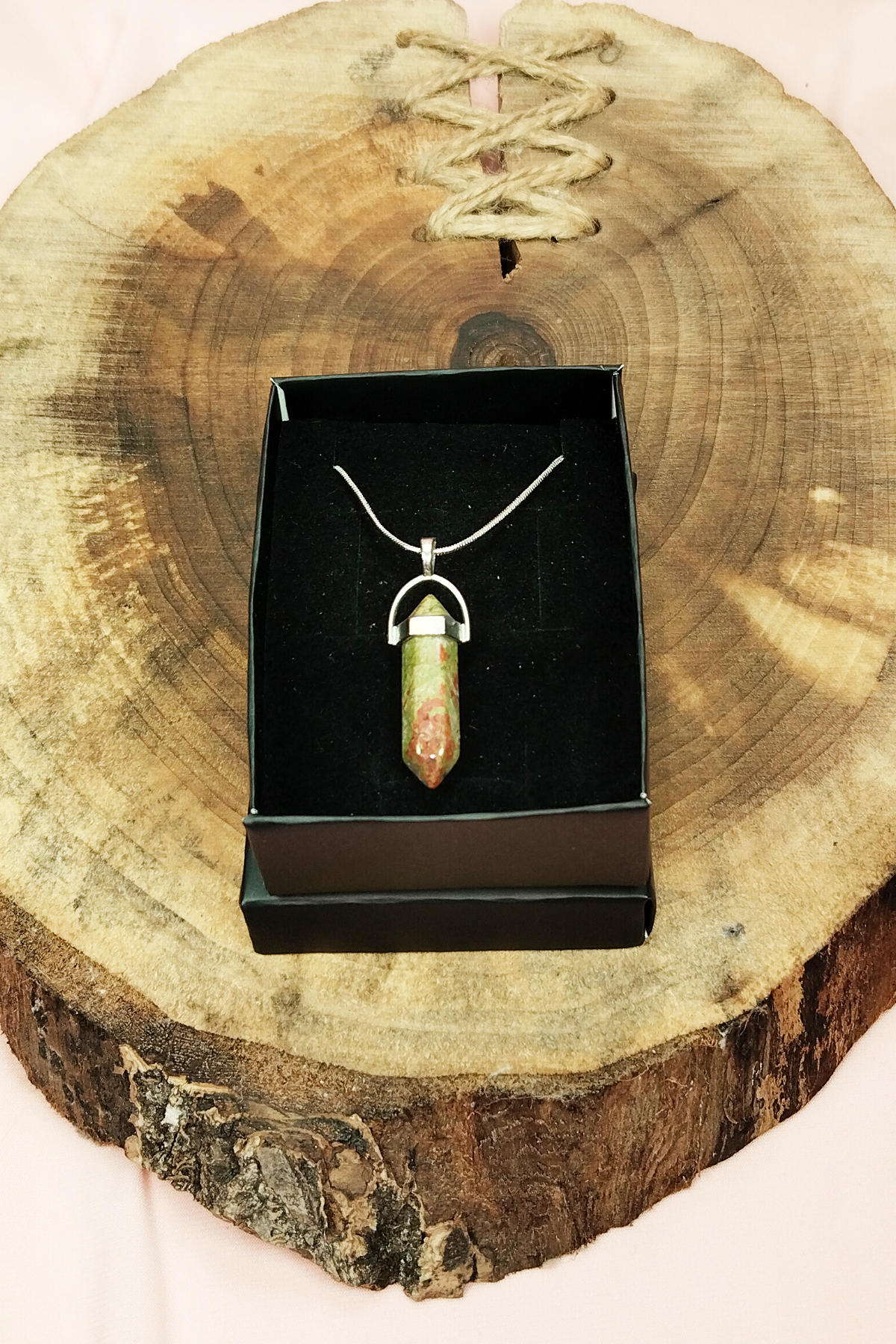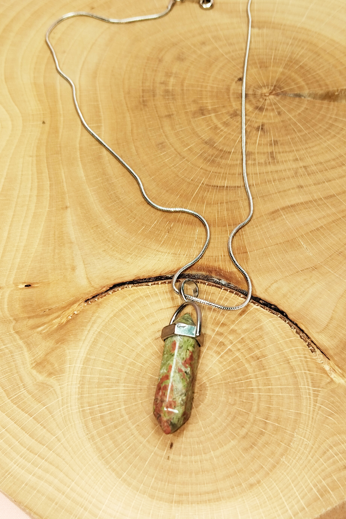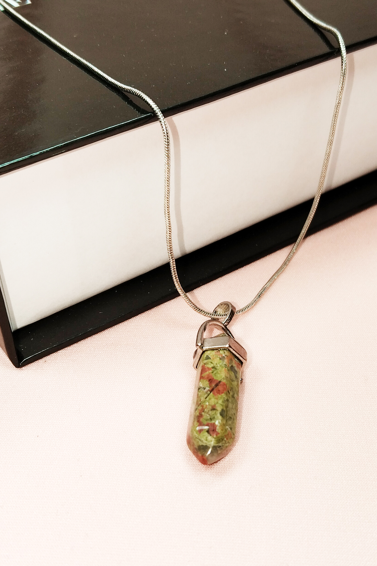 Unakit Doğal Taşı Zincirli El Yapımı Kolye Uç: 3 cm Zincir: 20 cm Kutulu