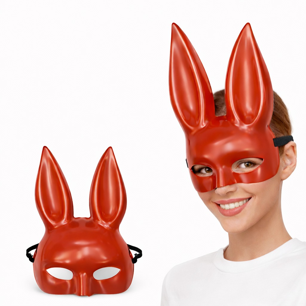 Uzun Kulaklı Kırmızı Lüks Tavşan Maskesi