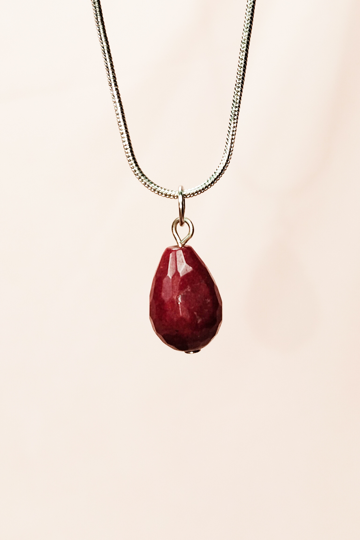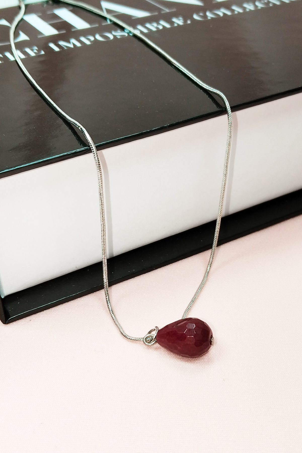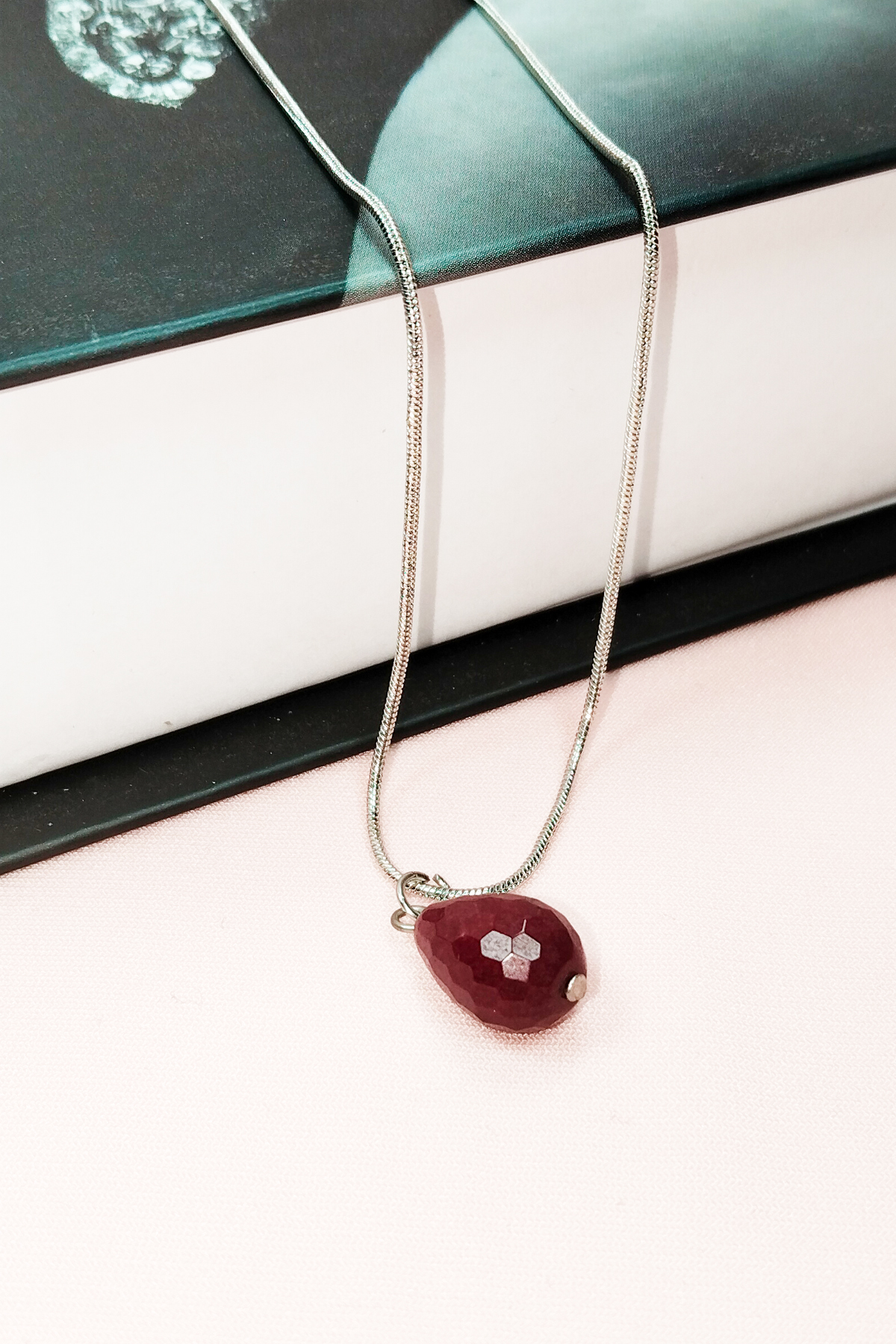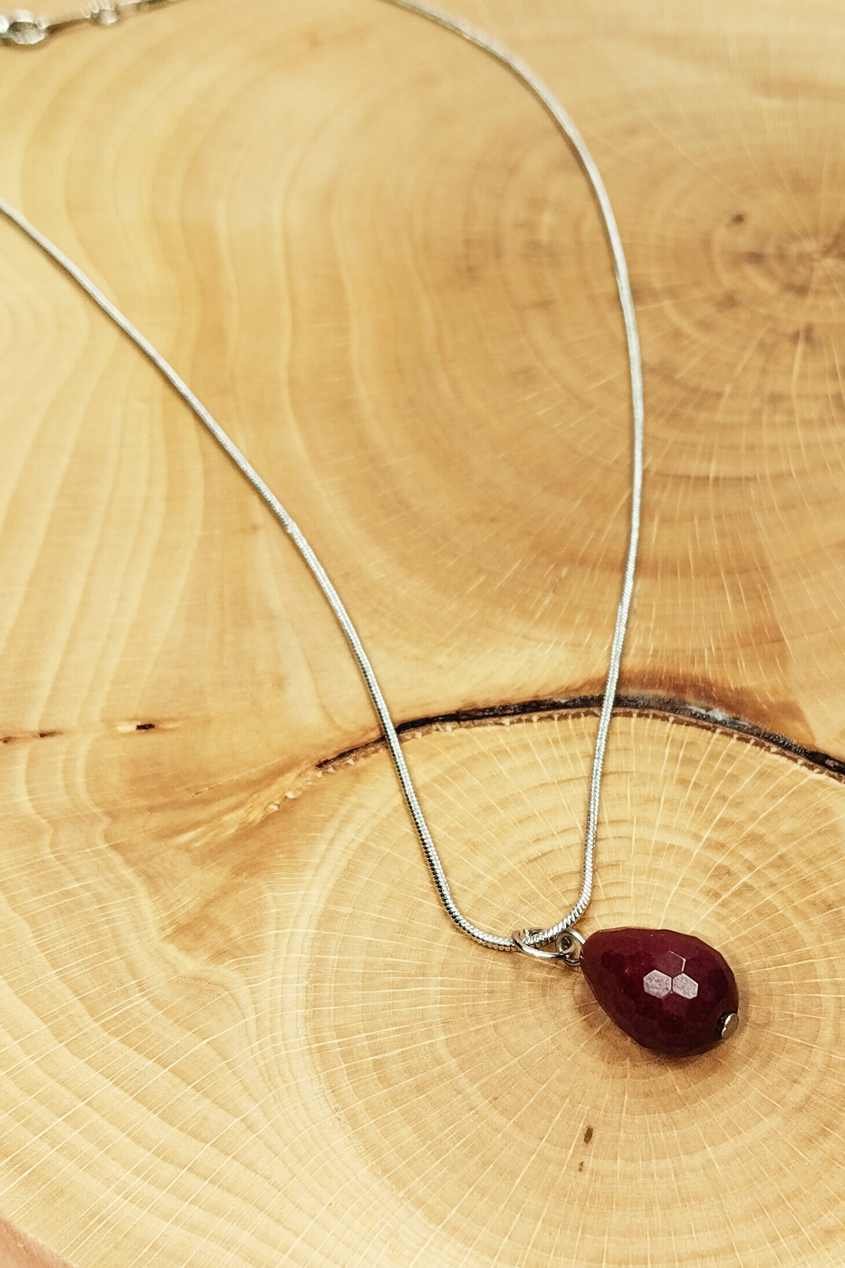 Yakut Doğal Taşı Zincirli El Yapımı Kolye Uç: 1,5 cm Zincir: 20 cm Kutulu