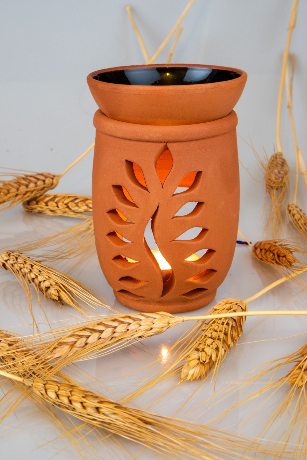 Aromaterapi yağlarıyla kullanılır, altına mum konur, üstüne isteğinize göre aromaterapi yağları,adaçayı veya tütsü koyabilirsiniz üst kısım kasesidir .