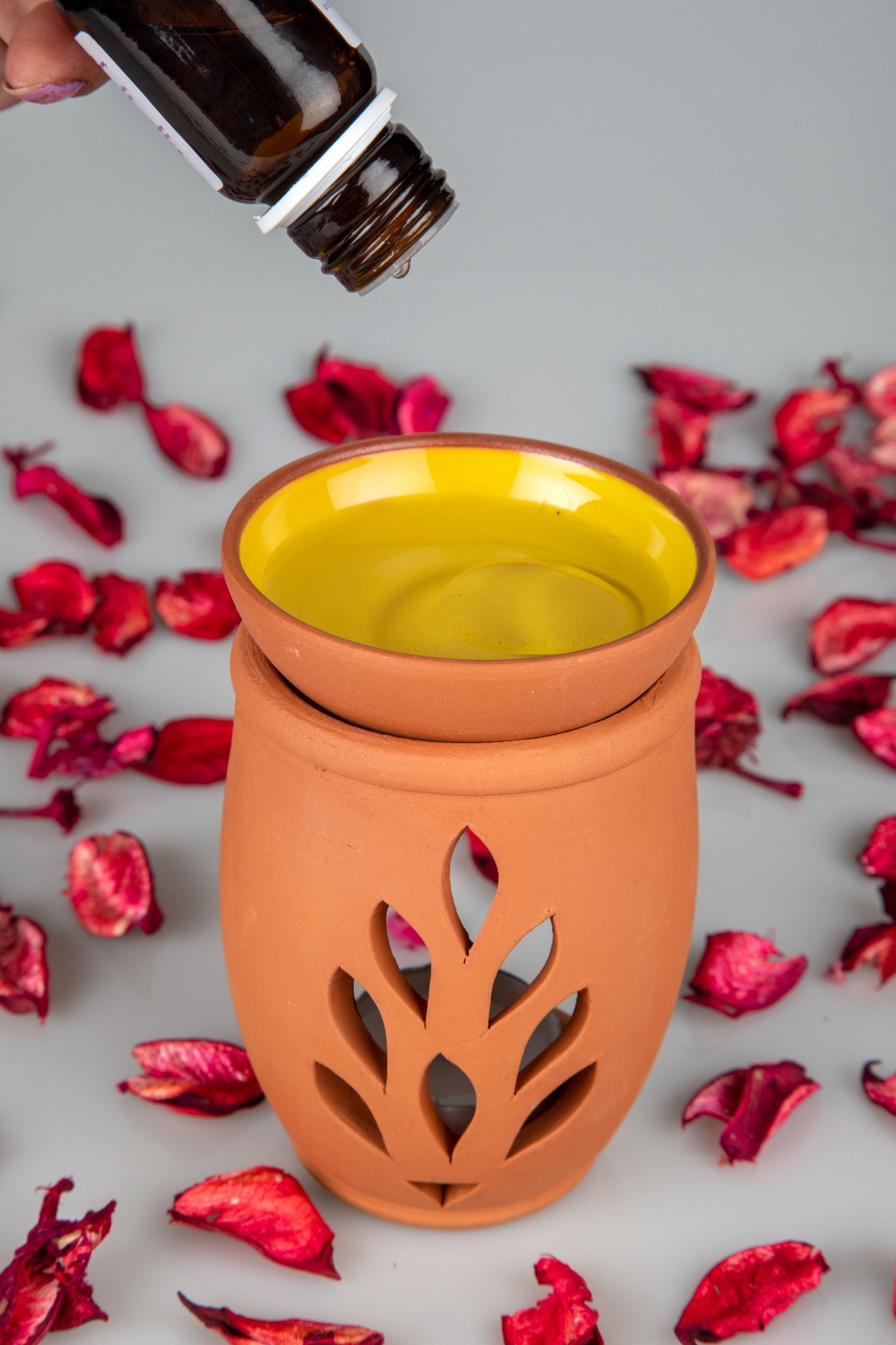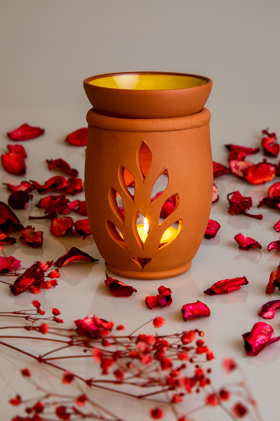 Aromaterapi yağlarıyla kullanılır, altına mum konur, üstüne isteğinize göre aromaterapi yağları,adaçayı veya tütsü koyabilirsiniz üst kısım kasesidir .