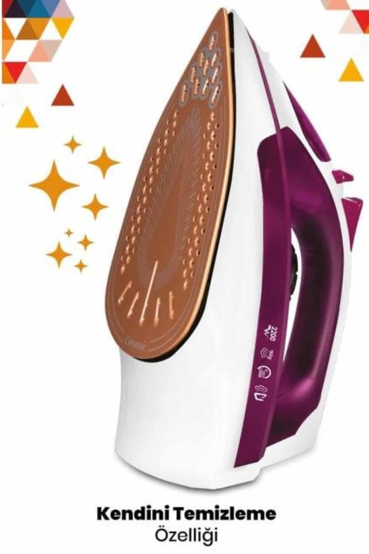 Estetik tasarımı ve yüksek performansı ile öne çıkan bu mor seramik tabanlı buharlı ütü, ütü yapmayı hem hızlı hem de verimli hale getiriyor. 2200W gücü sayesinde kısa sürede ısınarak güçlü buhar çıkışı sağlar. 177 gr/dk şok buhar performansı, kalın kumaşlar ve zorlu kırışıklıklarla başa çıkmak için ideal olup, her türlü giysiyi kolayca düzleştirir. Bu yüksek buhar gücü, zamandan tasarruf sağlar ve ütü işlemini daha kısa sürede tamamlamanıza yardımcı olur.Seramik taban, mükemmel kayma sağlar ve kumaş yüzeylerinde pürüzsüz bir geçiş sunarak ütüleme işlemini zahmetsiz hale getirir. Dikey ütüleme fonksiyonu, perde ve askıdaki kıyafetler gibi zorlu alanlarda bile rahat kullanım imkânı tanır. Ütü sırasında su damlamasını engelleyen damlama önleme sistemi sayesinde lekelerden kaçınarak daha temiz ve düzgün bir ütüleme elde edebilirsiniz. Kireçlenmeyi önleyen sistem, özellikle kireçli su kullanılan bölgelerde cihazın ömrünü uzatarak daha verimli çalışmasını sağlar.Kendi kendini temizleme özelliği, ütü bakımını oldukça kolaylaştırır. Böylece düzenli temizlik ve bakım işlemleri ile ütünüz her zaman maksimum performansla çalışır. 360 derece dönebilir kablosu ise rahat bir kullanım sağlar ve ütüleme işlemi sırasında daha fazla manevra kabiliyeti sunar. Modern tasarımı ve işlevsel özellikleri ile bu buharlı ütü, hem şıklığı hem de pratikliği bir arada sunar.Gelişmiş teknolojisi ve kullanıcı dostu özellikleri ile bu ütü, günlük ütü ihtiyaçlarınızı hızlı, verimli ve keyifli bir hale getirir. Hem estetik hem de işlevsel bir seçenek arayanlar için ideal bir üründür.