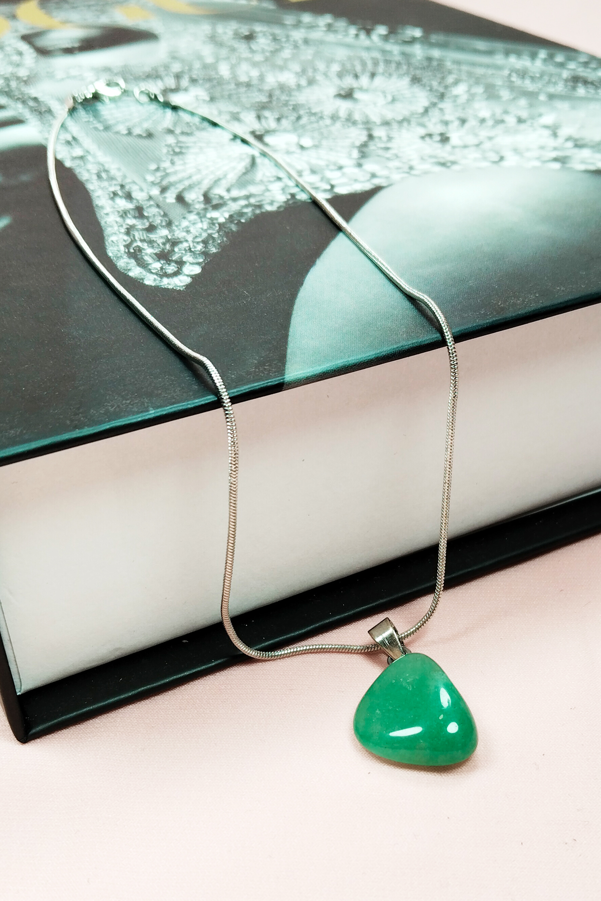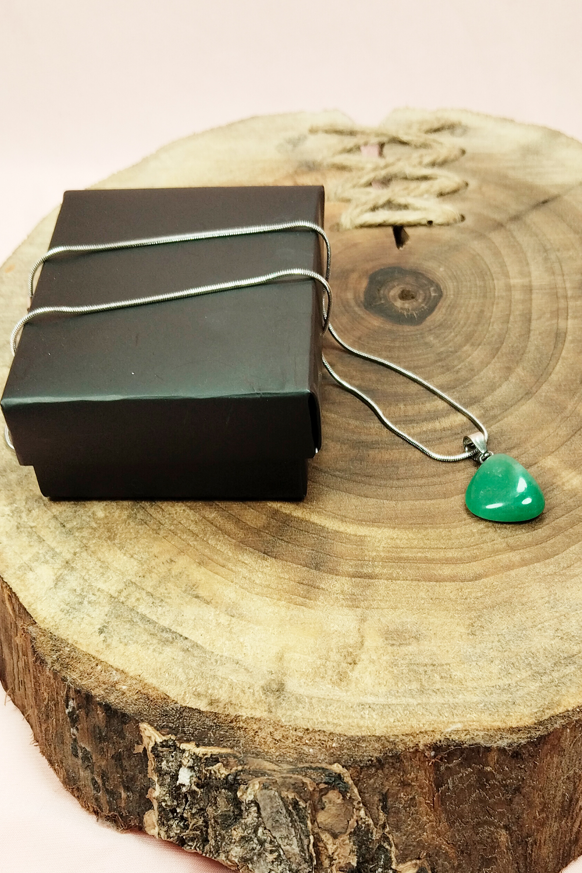 Yeşim Taşı Doğal Taşı Zincirli El Yapımı Kolye Uç: 2 cm Zincir: 20 cm Kutulu