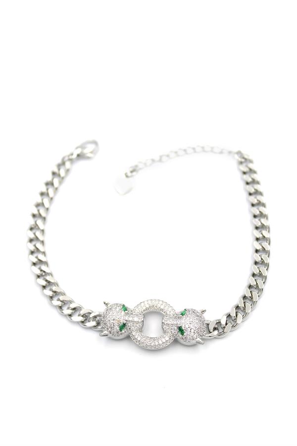 Zirkon Taşlı Leopar Bileklik - Gümüş