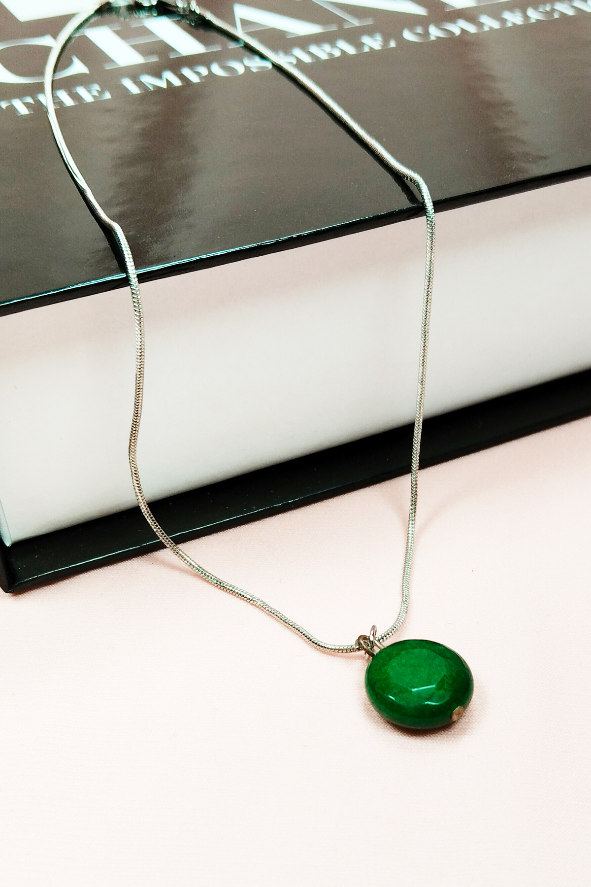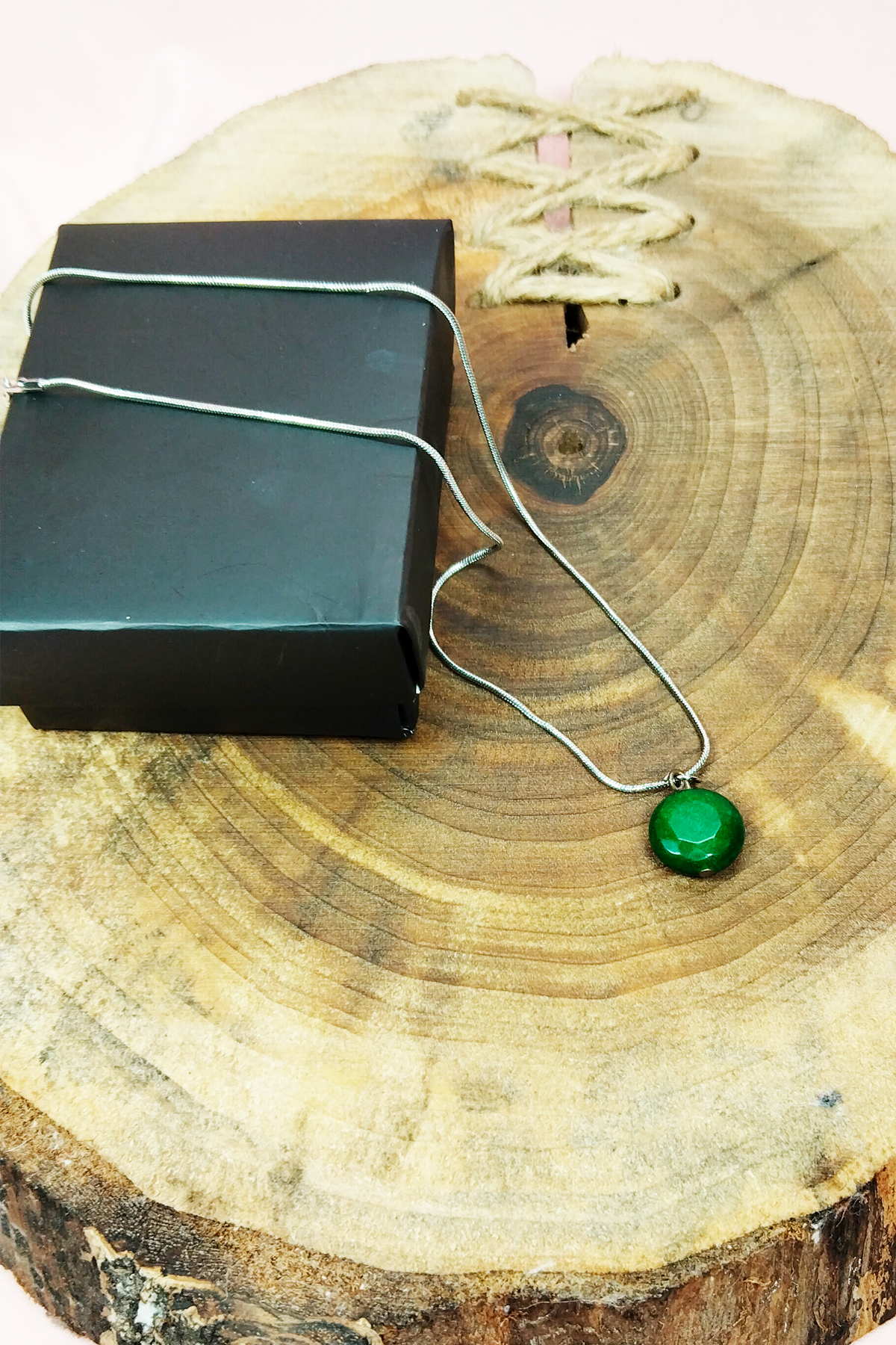 Zümrüt Doğal Taşı Zincirli El Yapımı Kolye Uç: 1,5 cm Zincir: 20 cm Kutulu